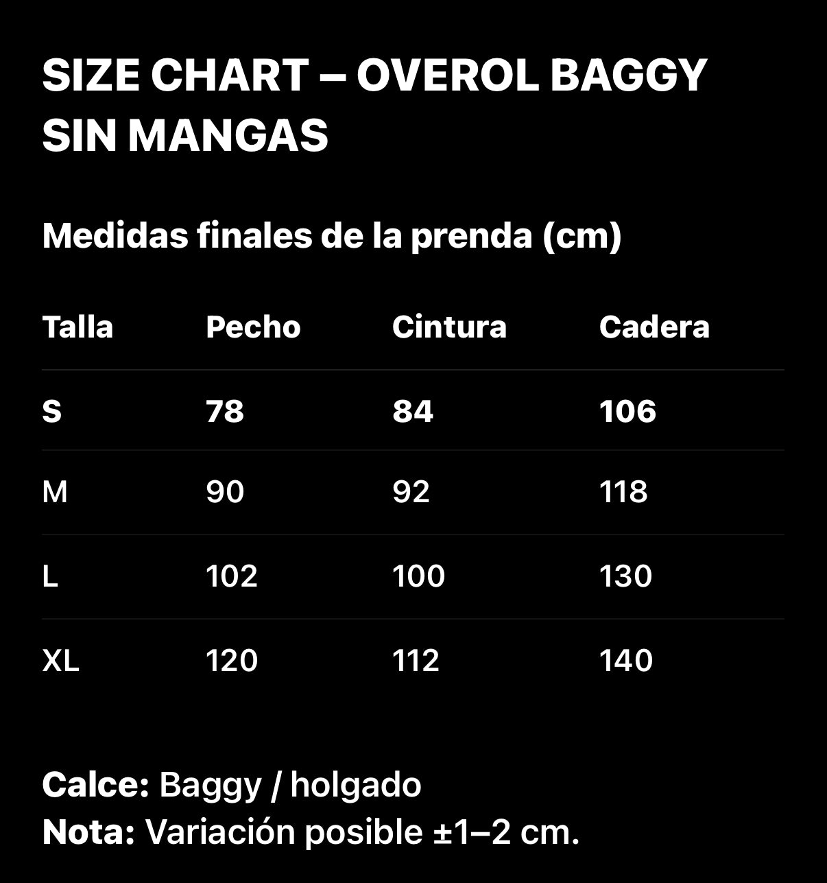 Elige la talla de tu overol